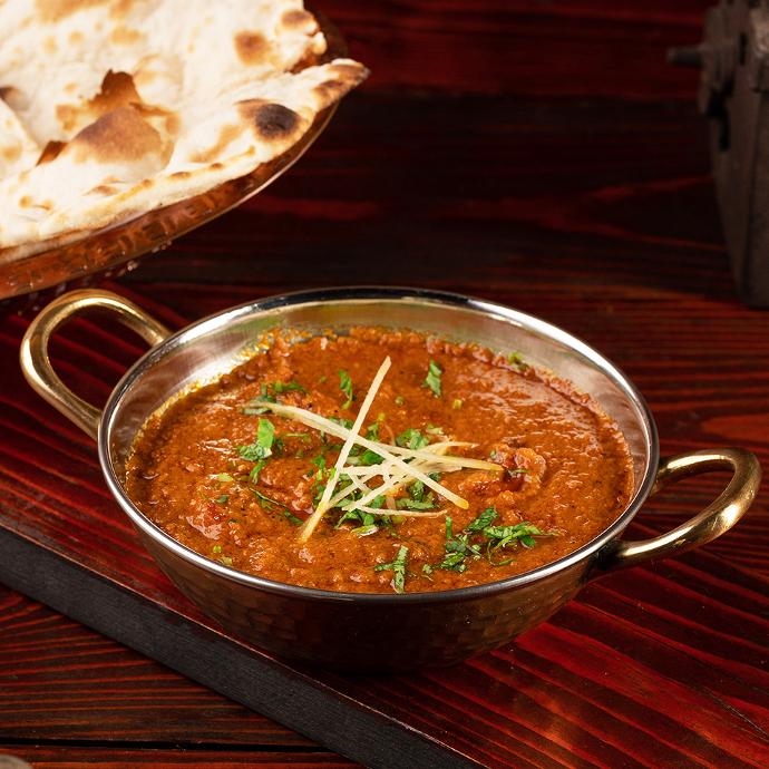 Fresh boneless chicken pieces grilled on tandoor, cooked in spicy tomato and onion masala with garam spices and various Indian spices.Served with plain naan bread