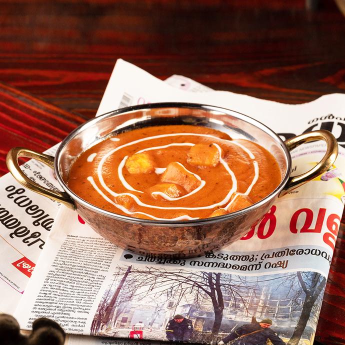 Pieces of cottage cheese cooked with butter, tomatoes, and cashew gravy. Served with plain naan bread