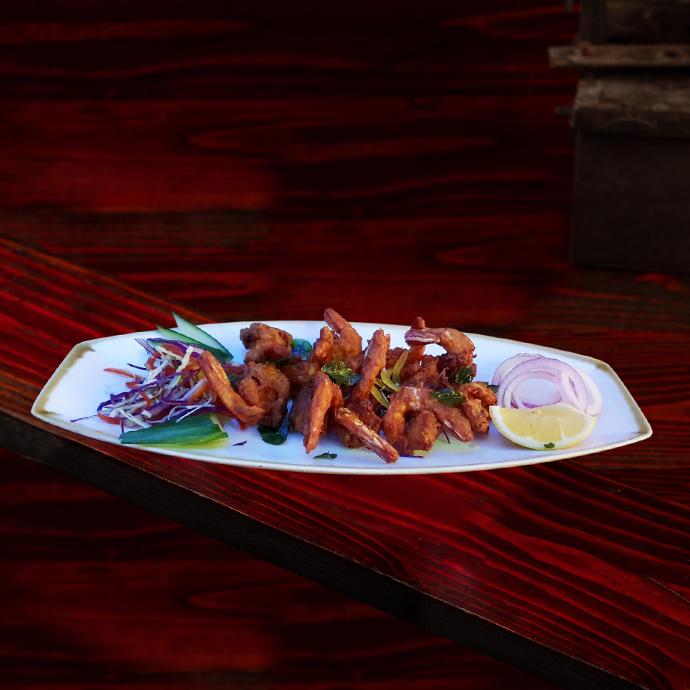Prawns 65 is a delicious South Indian dish that's popular as a starter or appetizer. It's made by marinating prawns in a flavorful mixture of spices and then deep-frying them until crispy and golden brown. The name "65" supposedly originates from the year it was invented or the number of ingredients used in the dish, though there are various theories about its origin.