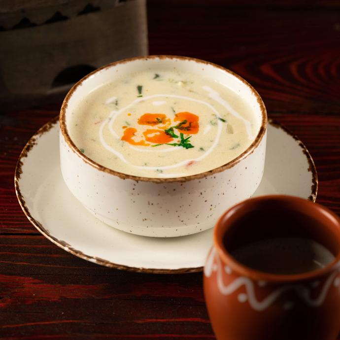 Delicious creamy soup inspired by dishes prepared in India, rich in mixed vegetables.
